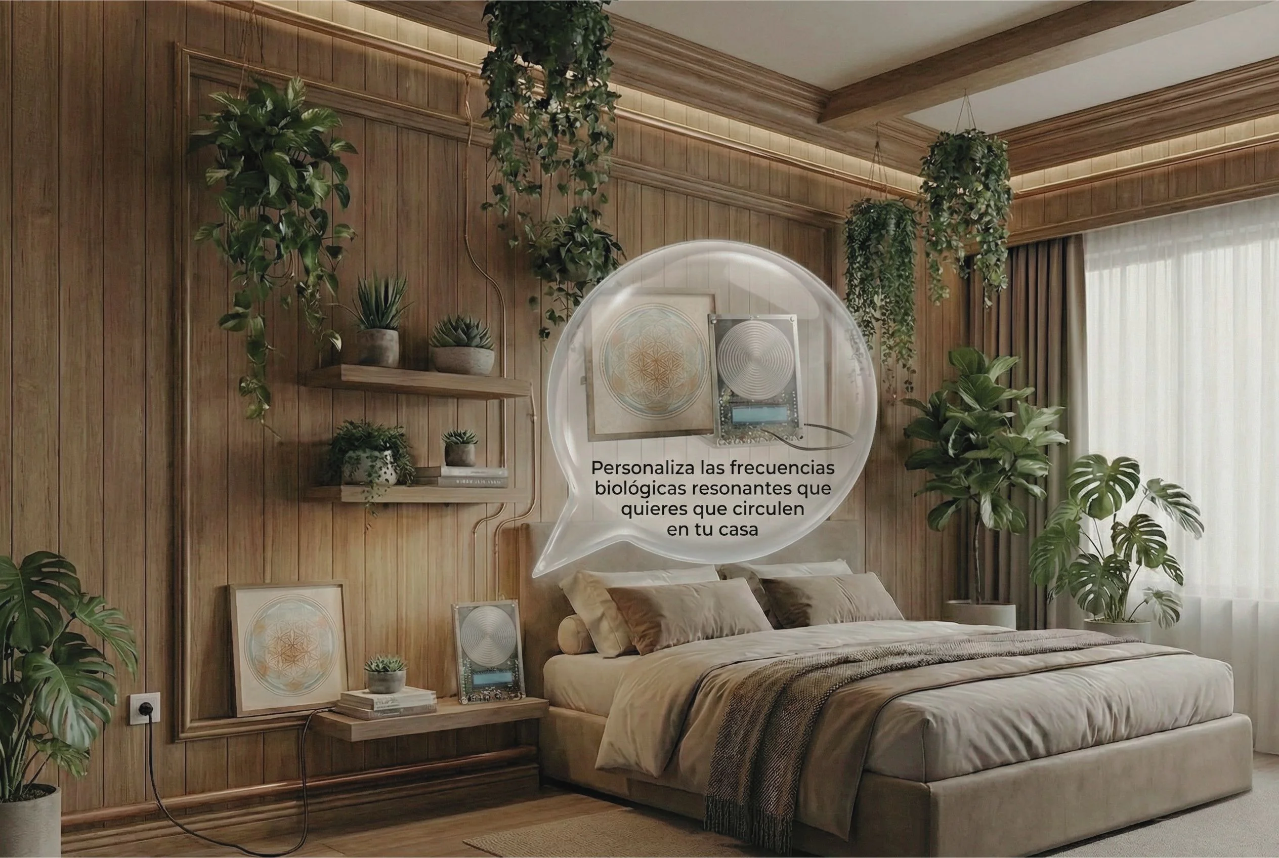 An environment designed to harmonize the electromagnetic and sound landscape of the home, reducing artificial interference and promoting states of deep nervous system regulation.