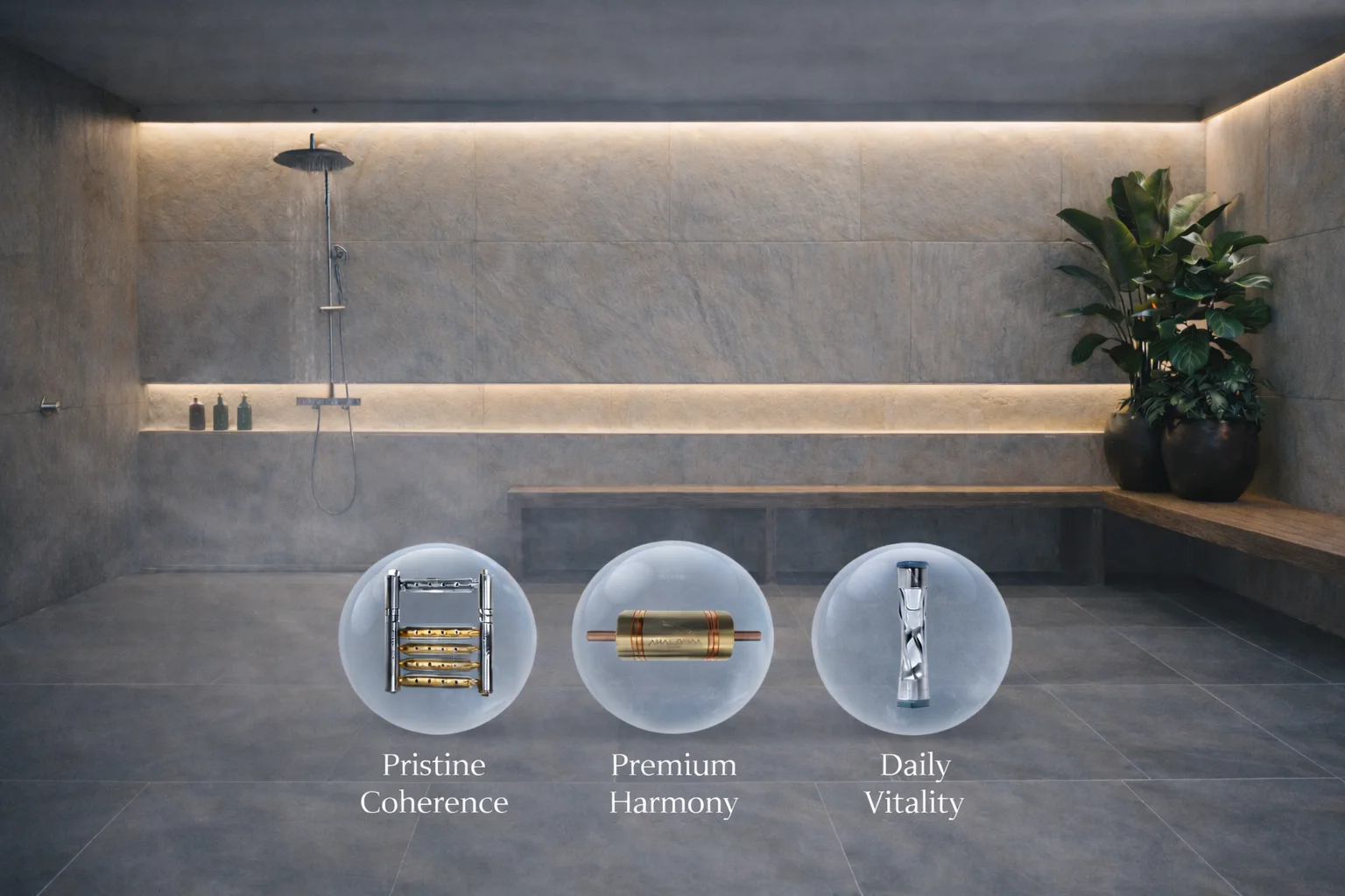 System designed to transform everyday water into a biologically active experience, supporting natural cleansing processes, skin revitalization, and daily well-being.